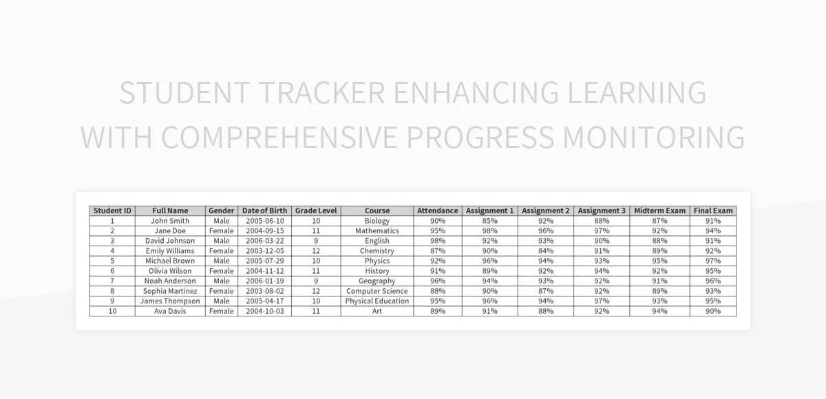 Student Tracker Enhancing Learning With Comprehensive Progress Monitoring Excel Template And